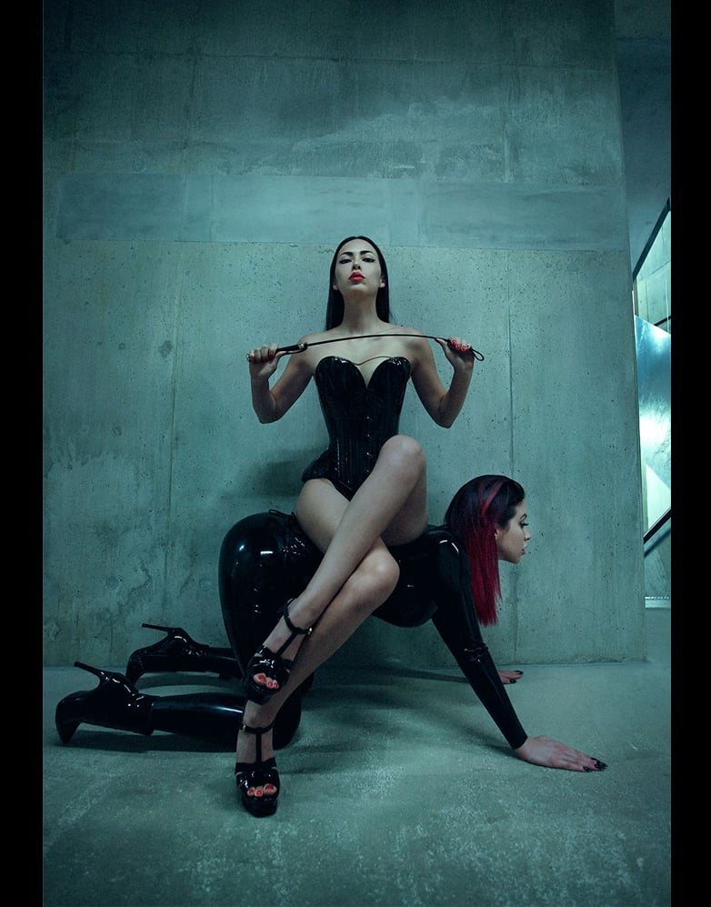 These leather corsets are crafted from soft black patent leather , merging traditional leather crafting techniques with contemporary designs.