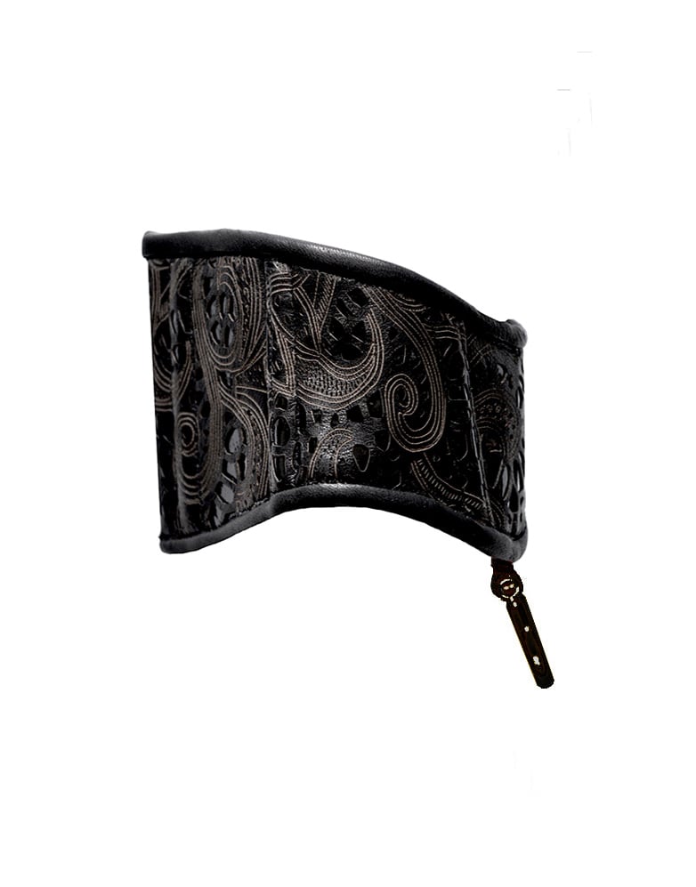 Premium posture collars made from intricate laser cut Leather. Each collar is boned and laced in the back to adjust to your individual size.